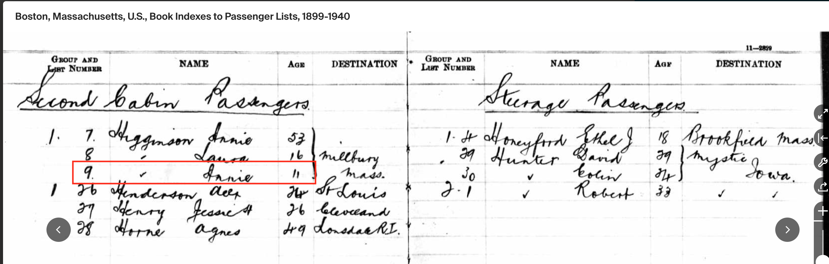 I thought she came over from Ireland in 1918.  It was 1911.  She was 11, and came over with her mother and sister, on the “Scotian“.